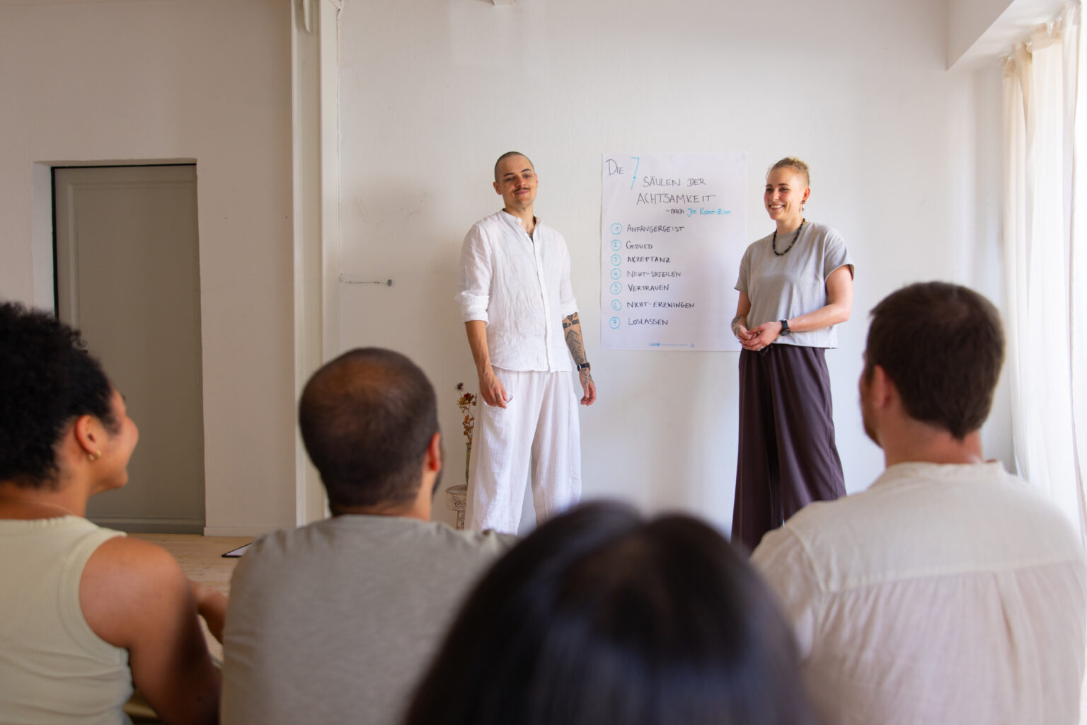 Wir achten darauf, dass sich unsere Gruppengröße zwischen 10 und maximal 15 Teilnehmenden bewegt. Das gilt sowohl für Kurse als auch für Retreats und Seminare. Mit dieser Größe können wir garantieren, dass genug Zeit und Raum für deine individuellen Bedürfnisse bleibt.